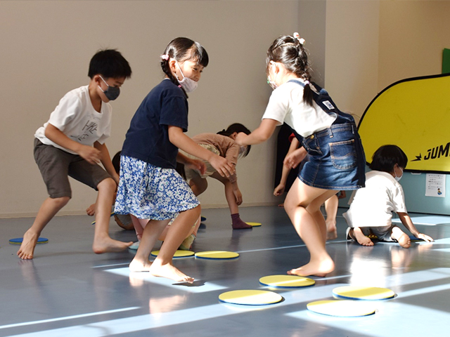 室内で身の回りのものやボールを使って遊んだり、道具を使わずに体をめいっぱい使って遊ぶことで、日々の中に運動の機会を取り入れることが目的です。その中で他のお友達との協力や気遣いを持つことで集団意識を育むきっかけにもなります。また、室内だけでなく、交通ルールやマナーを確認しながら近くの公園に歩いて向かって遊ぶことにより、安全に配慮しながら、外でものびのびと過ごすことが出来ます。